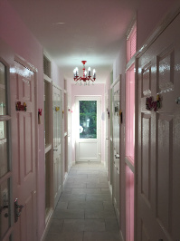 Each suite is decorated in a different colour/flower theme to a luxurious standard. Beds are waiting via a ladder at a shallow angle and thick rungs. Cats with all abilities can scale with ease, China bowls are used and washed daily. From the early hours until the evening the sound of music or TV is present for that homely feeling. Each room has a variety of beds and shelves to sleep and view from. You can also bring your feline friends favourite bed or bedding providing it is clean and fits in the room.